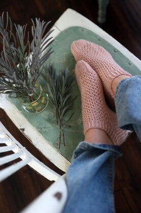 "A pretty, lacy shortie sock featuring flowing swirls and eyelets and sturdy heel for extra durability, The Blossom Socks are a quick springtime project."