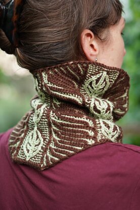 The Botanist’s Cowl combines two-colour brioche and garter stitch to create a striking leaf panel. If you are familiar with brioche increases and decreases (photo tutorial provided) and can work a sequence of panels in the round, this cowl is for you! Don’t be intimidated by the alternation of foreground and background colours - you only use one colour at a time, and both charts and written instructions guide you through every round of the pattern. The overall shape of the cowl is achieved with strategically placed increases and decreases. Enjoy the rhythm of brioche knitting and watch the leaves appear on the garter panels!