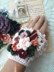 sewing needle for sewing the flowers, leaves and accents on, tapestry needle for weaving ends of cuff. Optional: glass / pearl beads, sequins, ribbon / lace Stitches: chain (ch), chain space (ch-space), skip (sk), slip stitch (sl st), single crochet (sc), half double crochet (hdc), double crochet (dc), 3dc cluster, treble (tr) picot. American terminology used.