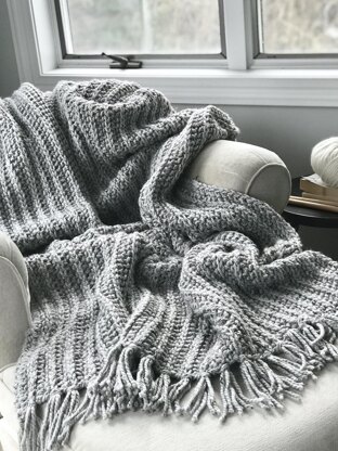 The Cassetta Throw features a unique ribbed texture. With a medium-heavy weight feel, it's perfect for those cold winter nights. With no wrong size and simple stitches, this throw is worked horizontally to easily customize the finished size. Fun fact: Cassetta means "cottage" in Italian.
