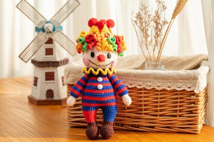 The finished clown stands approx 28cm, 11 inches tall.( The thinner the yarn you use, the smaller the doll will be)