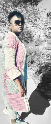 Warmth, texture, and a whole lot of color, The Color Me Bad Cardigan is just that. It's unique color design, makes it stand out in a crowd, instead of blending in. Made up of twisted dc, & sc stitches throughout, gives this sweater just the right amount of cozy texture that will surely be needed this season.