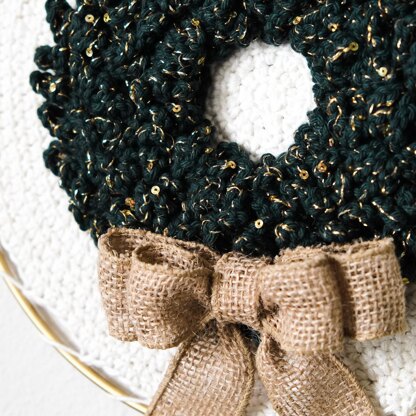 This modern, decorative crochet Christmas wreath wall hanging is a gorgeous addition to your holiday home decor. It features a beautifully textured surface crochet technique to create the wreath, applied to a simple circular crocheted background. It might look complicated, but it's actually quite simple. And, there are so many ways you can dress and finish off this wreath — wooden beads, tassels, floral items, and ribbons, etc.