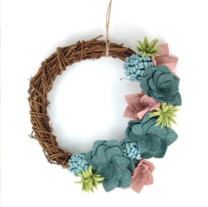 Create this beautiful decorative wreath, complete with felt succulent deorations in gorgeous on-trend colours.