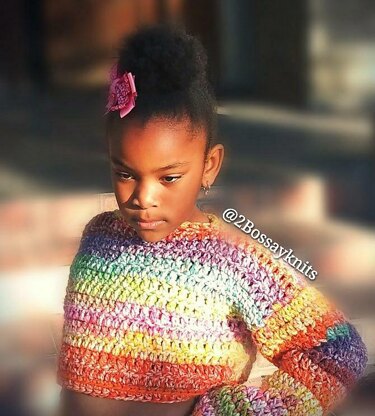 The Crayon Crop Top is a thick and cute little sweater with your little one in mind. Designed to be added as a layering piece for that extra bit of warmth, but still managing to "keep it cute and fashionable" as my little niece would say.