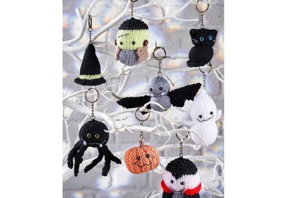 Add a little ghoulish glamour to your handbag, school bag or door keys with this collection of truly monstrous makes. With this pattern you can knit eight different Halloween themed charms: Pumpkin, Frankenstein’s Monster, Dracula, Ghost, Bat, Spider, Cat and Witch’s Hat. Designed by Amanda Berry @fluffandfuzz, each is knitted in acrylic DK yarns on single pointed needles (not in the round). For confident beginners and above, techniques used include casting on and off, knits, purls, increases and decreases, knitting stripes, and seaming to finish.