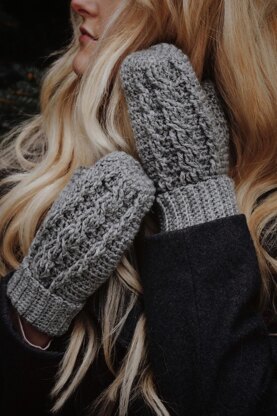 Description: "Classic crochet stitches combine with three gorgeous flowing cables to add the perfect amount of visual interest and texture, making The Driftwood Mittens an instant classic. The unique fold-up cuff looks knitted, but is actually crocheted, creating the perfect ribbed cuff to hug your wrists and keep you extra warm. This crochet pattern is suitable for intermediate crocheters and it equips you with a stitch glossary, helpful links to videos, an extensive photo tutorial to guide you through it, a schematic with precise measurements, and more. If you’re looking to create a gorgeous pair of classic crochet cable mitts for the season, then look no further than The Driftwood Mittens!"