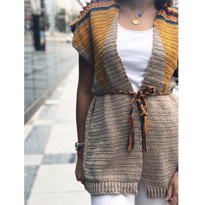 Inspired by the bohemian style as well as Pocahantes theme, a beautiful mix came out and made this cardigan that can make a stylish outfit and a unique piece. This Cardigan requires knowledge about tapestry crochet as it has a tapestry part and a mix of some well-known stitches. Easy skill level pattern in a PDF file that includes instruction step by step to make this gorgeous handmade item.