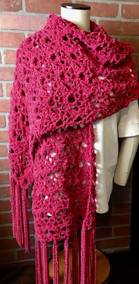 This EASY Cozy Lacy Stole/Scarf is fun to make and wear! This pattern is easily adjustable to any length you prefer, and trimmed with fun flowing fringe! Using a larger K sized hook it will work up quickly, taking only one skein of the recommended yarn. Bonnie's complete video tutorial (for both right and left-handers) will help you to know exactly how to crochet this in no time!