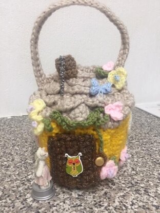 *The Fairy Owl House*has been designed for a child to play with, to look for fairies or to put their own little toy fairy in. It is a very easy crochet pattern and even someone without a lot of experience will still be able to make this. It has a door with a button closure with lots of decoration that you can add to or reduce it's entirely up to you. The finished size, without the handle, is approx 7ins/18cms. You will mostly be using chunky yarn with just oddments of double knit. The hooks needed are 4 and 5mm Would be a nice little gift for someone.
