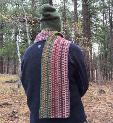 This scarf is perfect for people of any age or gender. It's a great first scarf for a beginner, a fast project for a gift, or a project you can work on while you watch TV without thinking too much.