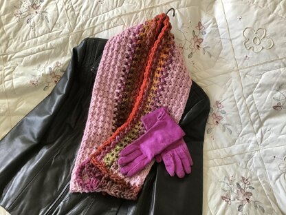 A rich tapestry of color and texture in this unique design crocheted using simple stitches throughout. Completely reversible. Looks great over your jacket or coat and over your favorite sweater as well.