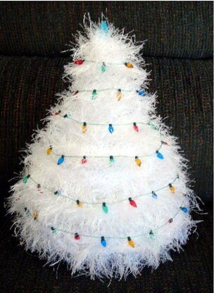 A great Holiday decorating item! Knit in white or green fur yarn. Knit up the tree, then the fur band branches are knitted on later. Decorate with mini ornaments, ribbons and bows, or anyway you wish! This makes a nice gift for your neighbors and friends. You will also need pillow or toy stuffing, and knitting needles, US #10. Finished tree is about 9 ½ tall.