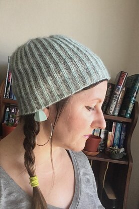 I know this is massively dating myself, but… anyone else remember the pastel-and-grey striped sweatshirts that were everywhere in the late ’80s-early ’90s? Usually they were pastel pink or blue or mint green. Pretty sure they were Gap shirts, but there might have been some Guess and a bunch of knock-offs, too. I picked up some fabulous yarn that reminded me of those sweatshirts, so I knit a striped brioche hat with it!