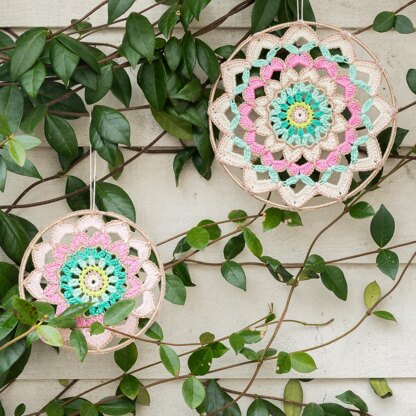 Whether you want to relax or party in the garden, The Garden Party patterns are perfect to brighten up your outside (or inside) space. Choose from a blanket, cushion, set of mandalas, bunting or lanterns, or make them all! With the GARDEN PARTY MANDALA‘S you bring a touch of happy to your garden! With this pattern you can make two sizes of mandala’s and did you know they are great to use as doilies too? Mandalas measure 15cm and 20cm. Perfect for hanging in a tree or on a wall. Made in Yarn and Colors Must Have and Glamour yarns. 2.5mm hook.