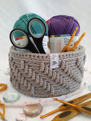 The Gemini Basket is number 3 from the Crocheted with Love Baskets Collection. This basket is highly textured by using the Half Treble Crochet, stitched closely together in a straight angular line, each row is identical to each other. This basket can be made larger in the round, remembering to keep within the multiple stitch count. Bulky or super bulky weighted yarns work best for this pattern. The raised Half Treble Crochet gives the illusion of the 3D effect. Dependent on experience, this project can be completed within 1 day. This pattern is worked in the round and joined with Slip stitch, making it seamless. Instructions for inserting a hard padded bottom, which is optional, is included in this pattern. This pattern takes approximately: 220 yards. Skill level: Beginner/Intermediate. Finished basket should measure approximately 7” to 8” in diameter and 3.5 “ in height.
