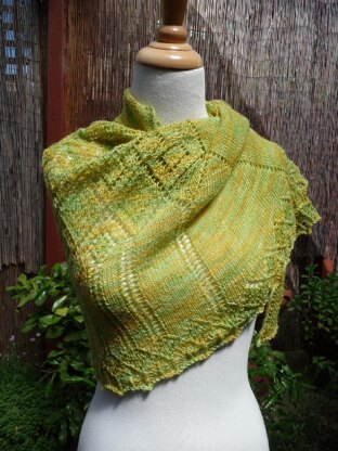 "Sophy had chosen a dress of her favourite Pomona green... and particularly fine diamond drops hung from her ears..." The Grand Sophy is a deep crescent shaped lace shawl with optional beads. The pattern is designed for tonal or low-contrast variegated yarns. Instructions are given for fingering and heavy-lace weight yarns (3-ply).