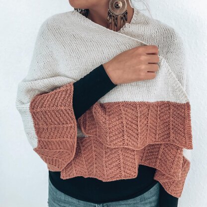 Sometimes a project has to rest for a while to develop optimally. This wrap has waited quite a while for its completion. It always lacked the perfect finishing edge, no idea was good enough. After a long break, it has now become exactly the way I had imagined it. A wrap, on average similar to a cardigan, which can be put over the shoulders and warms wonderfully when you don’t want to turn on the heating yet on the first cool days of autumn. The wrap is simple, but stands out with nice details at the increase points and of course with the nice edge. The following techniques are included: Knitting, purling, increases, twisted stitches, slip stitches.