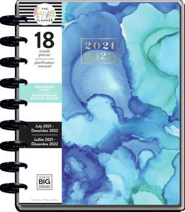 This Classic size Happy Planner features rainbow watercolor designs on the 18 dividers. It’s designed in a colorblock layout with versatile boxed spaces. It comes dated and runs from July 2021-June 2022. The colorblock design is ideal for those who like to plan a timeline of their day or you can use the different color boxes to divide your work tasks, home responsibilities, and personal activities.