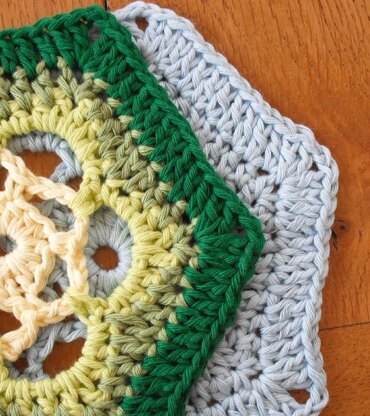This motif is the second one in the series of 7 in The Hexagon Project 2013. The theme for The Hexagon Project 2013 is lacy simplicity. All 7 designs can be found in The Hexagon Project 2013. All hexagons are designed to be the same size so that they can be joined together and used to create a blanket or a cushion, table runner…..use your imagination! They are written for one continuous colour but can be done in many colours by changing colour at the start of each round. The motifs are suitable for those fairly new to crochet who can crochet in the round. The size of each motif is 20 cm (8 inches) from point to point in aran weight yarn. But please note that I do crochet fairly loosely.