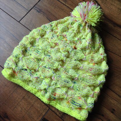 The Highlighter Affair is a slouchy hat knit in 2 colors of fingering weight yarn. It uses the butterfly stitch as well as wrap & turns to create a fun texture with color pops. There are only a couple of purl rows on the brim and the rest is all knits and slipped stitches so it’s a much easier hat to make than it appears.