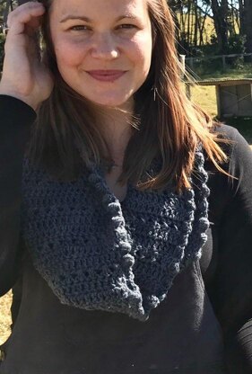 I've republished the original Ivy Cowl 1 in a different yarn . It's named after a special Aunty I grew up with . The pattern is easy to crochet , then it's joined and a bobble edge added with the smaller hook . Here it is made in Bendigo Woollen Mills Luxury an 8 ply yarn from Australia .