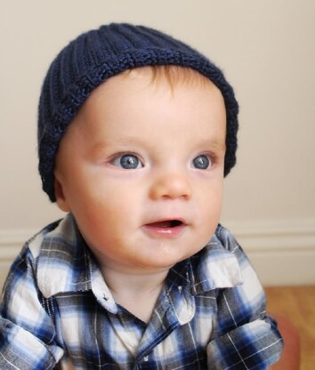 This is the ultimate simple baby beanie, sporting a unique fit and construction. This little cutie is designed to fit on the back of the head, high on the forehead, for a "fisherman's cap" style. I love how it lets those little baby hairs stick out of the front! So sweet for a boy or a girl!