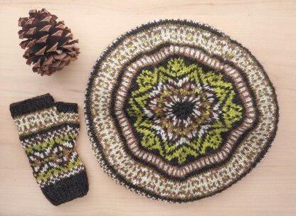This is a pattern for a knitted tammy, beanie, and mitts/fingerless gloves worked using the stranded colourwork technique and worked in the round.