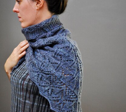 The Keeper shawl is knit from the bottom up starting with the lace edging and continuing through into the body of the shawl. Single side decreases and a centre double decrease create a triangular shaped shawl which is eventually grafted at the top to join together the left and right sides of the garter stitch band.