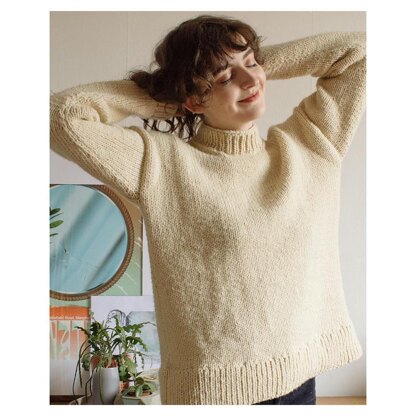 This sweater is knit up in stocking stitch with chunky yarn, and features dropped shoulders for the perfect slouchy fit.