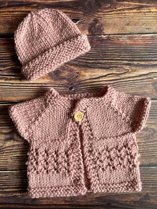 Instant download PDF knitting pattern for a top down chunky baby cardigan and hat.