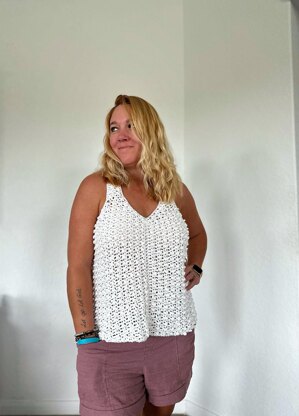 This is a crochet pattern for the Layken Tank, an easy and versatile Top that will pair perfectly with all your favorite outfits. It is made up of simple single crochet, double crochet, and Treble crochet stitches, creating a beautiful and modern texture.
