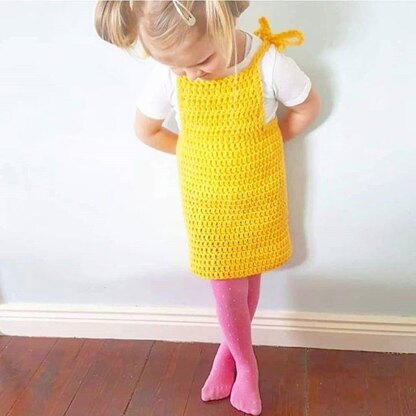 The Lemon Drop Pinafore crochet dress is super simple to make. You will have this cute little dress whipped up in no time.