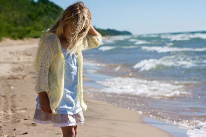 A summer cardigan with cascading front panels, whose light weight and softness can be appreciated not only by the wearer, but also the knitter. The perfect, quick, sweat free summer project.