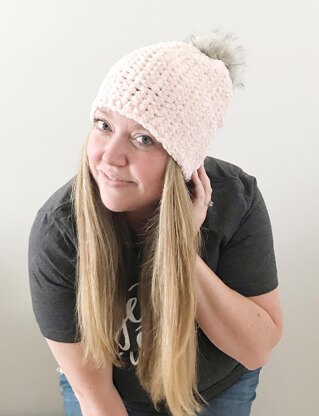 The Lucy Beanie is sure to become your winter staple. This quick and easy crochet pattern is great for beginners and looks luxurious in the bulky velvet yarn.