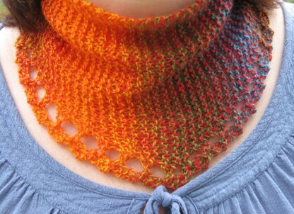 It’s knit in garter stitch until halfway through the yarn before decreasing, thus maximizing the potential of your skein. The pattern includes instructions for knitting it as a triangular shawl. Sport weight yarn can also be used, and I recommend a 4.5 mm needle for this.