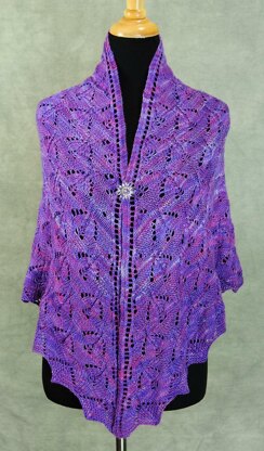 This project lets you do lots of knitting on a circular needle, needs only one or two skeins of yarn, and makes a great carry around project. The stitch pattern for this shawl is easy to learn because of its strong visual nature. It utilizes sections of reverse stocking stitch to delineate each leaf pattern. The pattern is worked bottom up. It’s completely charted to make the transitions simple to follow, as each section decreases. A centre pattern panel shifts the decrease columns out from the mid-way point, to make this project a little prettier. Each right side row shortens by 4 stitches, making the work feel as though it is speeding up the closer you get to the end.