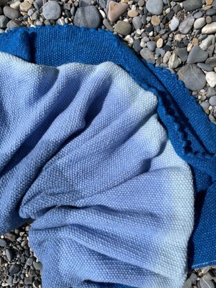 The Pearl blanket is knitted in a slipped-stitch pattern with one strand. I used four shades of blue, and this is Drops Air mix yarn. You will need circular needles and a hook. This pattern includes three videos.