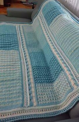 The Penny Drops is the first piece of "heART" in "The Penny Collection", named for my mom. The blanket is constructed using post stitches on Tunisian crochet to create a beautifully textured blanket, with a center and 2 side panels. The panels are bordered with crochet post stitch patterns before assembly and the blanket finished with an eyecatching border. Caron Cakes were used as the main color with a contrast yarn to create the color block effect. This project is suitable for competent beginner Tunisian crocheters who are familiar with the basics of the technique.