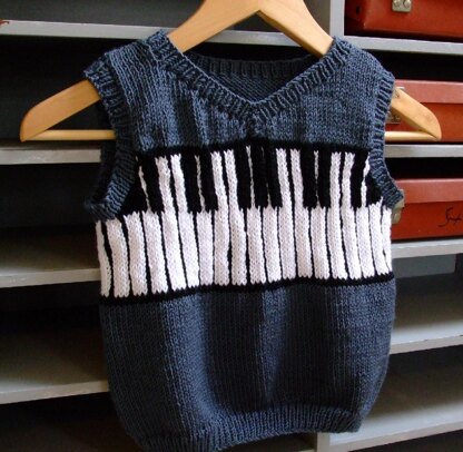"The Piano Vest" is part of a collection including a dress and a sweater. This vest can be knit in the round or knit flat, choose which PDF to download.
