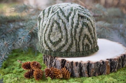 The Pines hat features a seamless, two-tone, wood grain design. A simple fitted beanie designed for an adult male with a 22-23" head circumference. 2 Skeins of LOFT by Brooklyn Tweed - 100% American Wool. 1 light color, 1 dark color (shown in colors; Foothills & Birdbook) Needles: US #3 (3.25mm) 16" circular, US 3 (3.25mm) DPN Gauge: 13 sts/14 rows = 2 inch in Stockinette