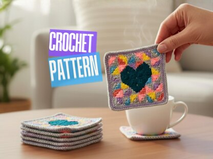 Create adorable pixel heart crochet coasters with this easy granny square crochet pattern.