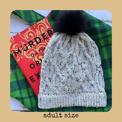 The Plot Thickens Hat is a super-stretchy cable hat for the whole family. Each hat uses just one skein of DK weight yarn. The hat features a crochet-cast on & optional sewn brim. There are both charts and written instructions for the cable design. This pattern was professionally tech edited.