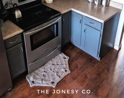 The Polygonal Rug works up super quickly with jumbo yarn. This rug is great for in front of the sink, stove or next to the bed.