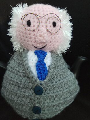 - The tea cosy is worked using any DK wool, double stranded. Small amount of stuffing required for the head. 2 or 3 buttons required. Glasses .