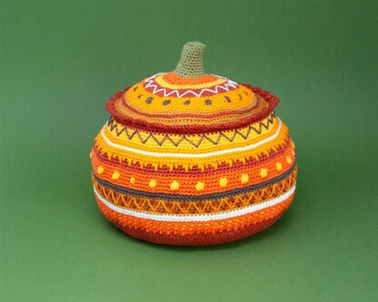 This highly decorative pumpkin is perfect for those trick or treat moments. It has a space inside to keep some yummy treats. This pattern clearly details every stitch you will need to complete this pumpkin with lots of photographs. I also have videos on my Instagram account explaining each stitch and technique @makemeroardesign.