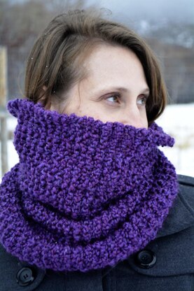 The Purple-People-Eater Cowl is a great first project for a beginning knitter, as well as seasoned knitters who want a fun and fast project. It knits up quickly, uses only one stitch (the knit stitch), and creates a beautiful and cozy cowl.