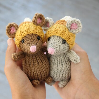 The Quiet Little Mouse is a pattern for a 4" stuffed mouse knitted in the round, stuffed with polyester fiberfill. The pattern for the hat is included. You should know how to knit in the round to attempt this pattern, as well as basic knowledge of increases and decreases. I've included the instructions for both knitting and crocheting the ears; choose whichever you prefer.