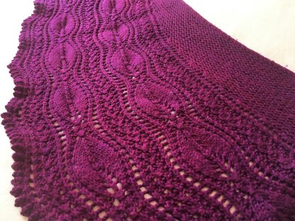 To make it easier to follow the pattern of increases and decreases when working the leafy lace repeats – stitches relating to each of the individual leaf motifs are highlighted in yellow and blue.