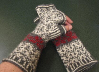 I Love Fair Isle, and loving Fair Isle like I do I couldn’t keep designing Beanies and Tams, so I designed these Fair Isle fingerless gloves. I made them extra long so I could keep the Fair Isle Fun going as long as I could. I knit them using a US #4 12”-circular changing to double points for the thumb; but you could use double points throughout.